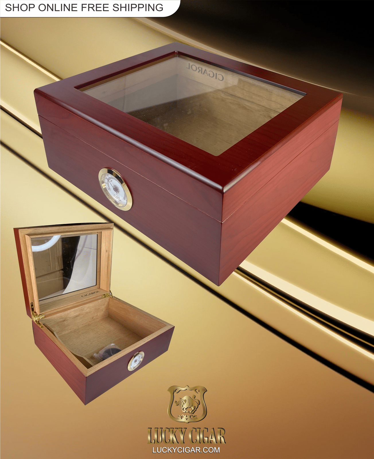 Desk Humidor with Wood Grain, Window For 50 Cigars