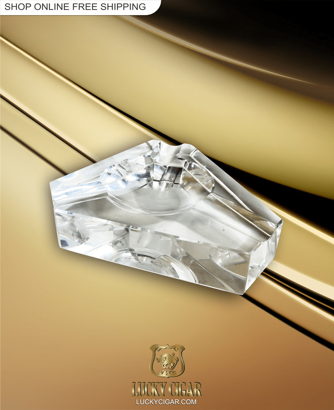 A modern, eye-catching ashtray made from heavy-duty crystal glass, offering both durability and style. Its triangular shape and deep grooves ensure cigars rest securely, making it an elegant centerpiece for any smoking lounge.