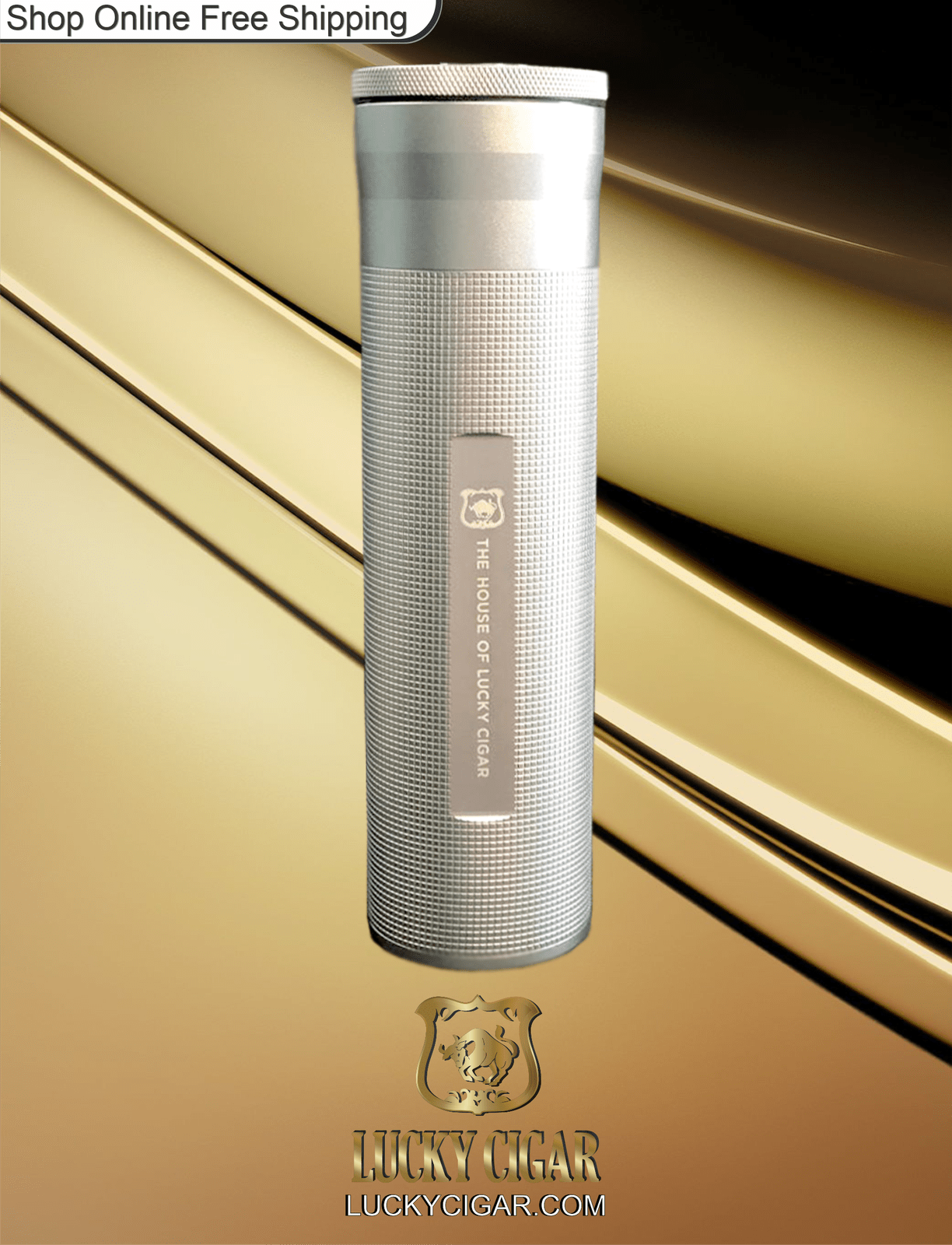 A compact yet durable travel humidor with a built-in hygrometer, ensuring cigars stay at the perfect humidity level. The silver design adds a sleek, modern touch, making it one of the best cigar gifts for those who need both function and style.