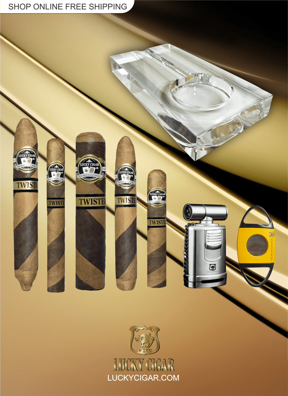 This set includes five Twister cigars, a cigar cutter, a table torch lighter, and an ashtray, making it a well-rounded gift for cigar smoker who appreciates a mix of accessories in their setup.