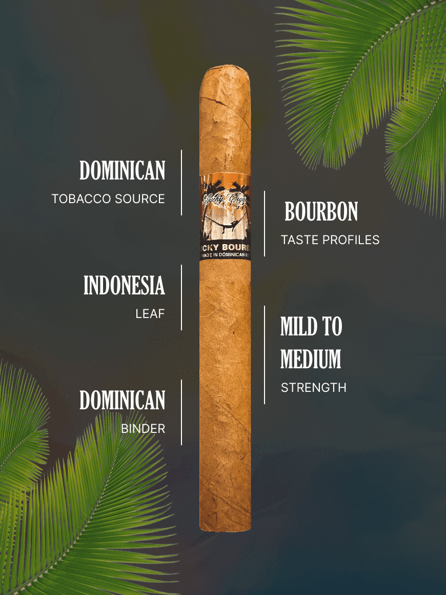 Experience a refined smoking journey with the Lucky Flavors Bourbon 5x42 Cigar. These cigars are crafted with Dominican fillers, grown from Cuban-seed, encapsulated in a smooth Indonesian wrapper. Ideal for those seeking a mild to medium-bodied smoke, these flavored cigars offer a delightful aroma and a unique taste that adds an intriguing twist to the traditional cigar experience.