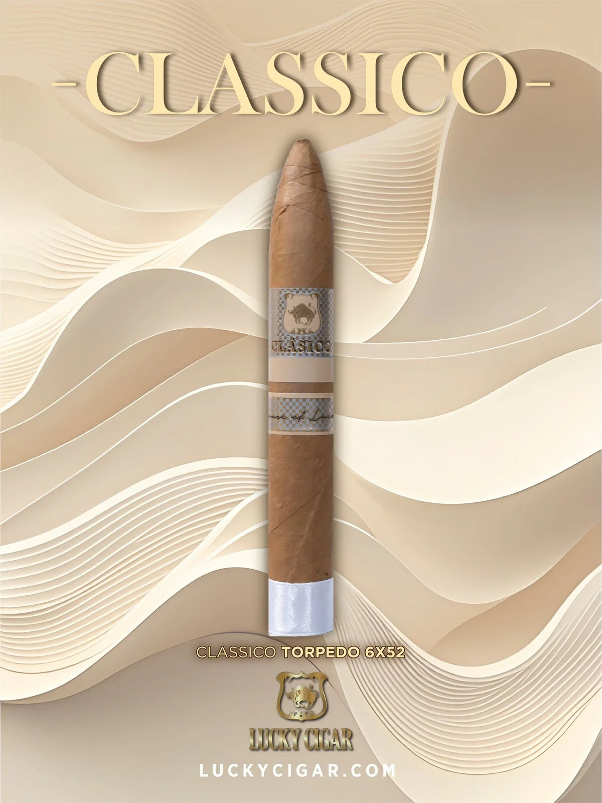 Classic Cigars - Classico by Lucky Cigar: Torpedo 6x52 Box of 20 brings you an exquisite smoking experience with its expertly crafted blend. This fine cigar is lovingly handmade in Nicaragua, featuring a light Connecticut shade leaf wrapper from the highest quality tobacco.