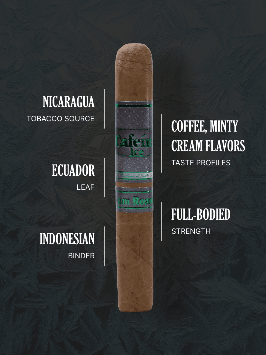 Experience the unique fusion of flavors with the Cafeina Ice Medium Roast Toro cigar. This handcrafted gem from the Infusions Collection by Lucky Cigar promises a delightful smoking session. Wrapped in a light Connecticut shade leaf, this cigar offers a harmonious blend of mild to medium strength tobaccos. These premium long leaf ligero tobaccos hail from various regions of Nicaragua, ensuring a rich and diverse taste profile.