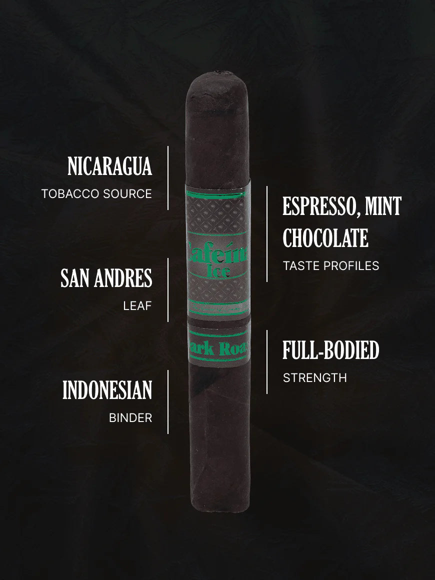 Indulge in a captivating smoking experience with the Cafeina ICE Dark Roast Toro cigars. Crafted for espresso aficionados, this unique creation by Lucky Cigar merges the robust flavors of Nicaraguan maduro tobacco with a bold espresso essence, complemented by a refreshing hint of mint chocolate. Each puff reveals a symphony of freshly roasted coffee beans intertwined with a cool, minty undertone, making it a connoisseur's delight.