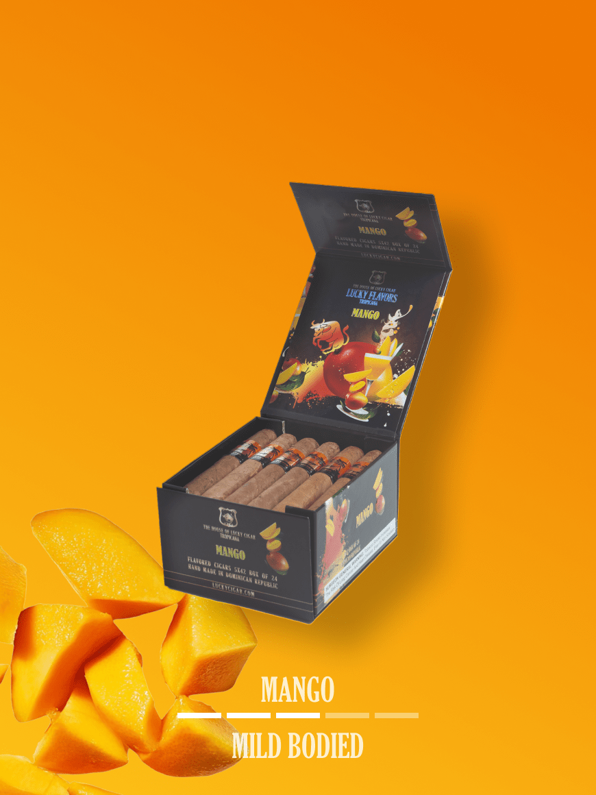 Experience a unique twist on your smoking ritual with the Lucky Flavors Mango Cigars. These cigars combine the rich heritage of Dominican fillers, cultivated from Cuban seeds, with a delicate Indonesian wrapper. Each cigar in this collection offers a gentle, flavorful smoke with a mild to medium body, delivering a smooth taste and a pleasant aroma. Discover the refreshing mango essence in each hand-rolled piece, crafted meticulously in the Dominican Republic. Perfect for those looking to enjoy a different flavor profile.
