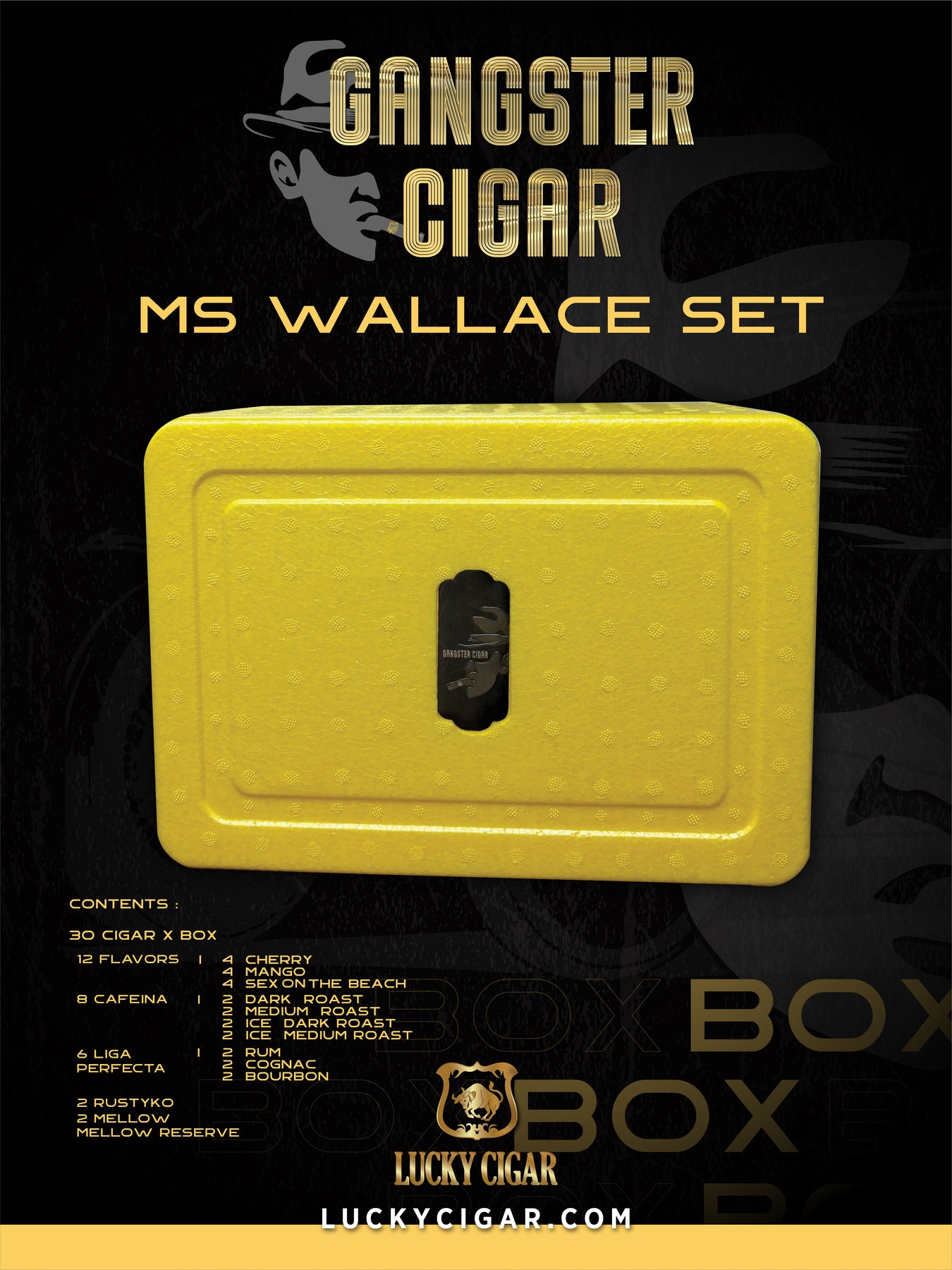 The Gangster Cigar Ms. Wallace Set is an exclusive 30-cigar collection that highlights some of Lucky Cigar’s most celebrated blends. Designed for aficionados seeking variety and depth, this set features a thoughtful balance of infused and traditional styles.