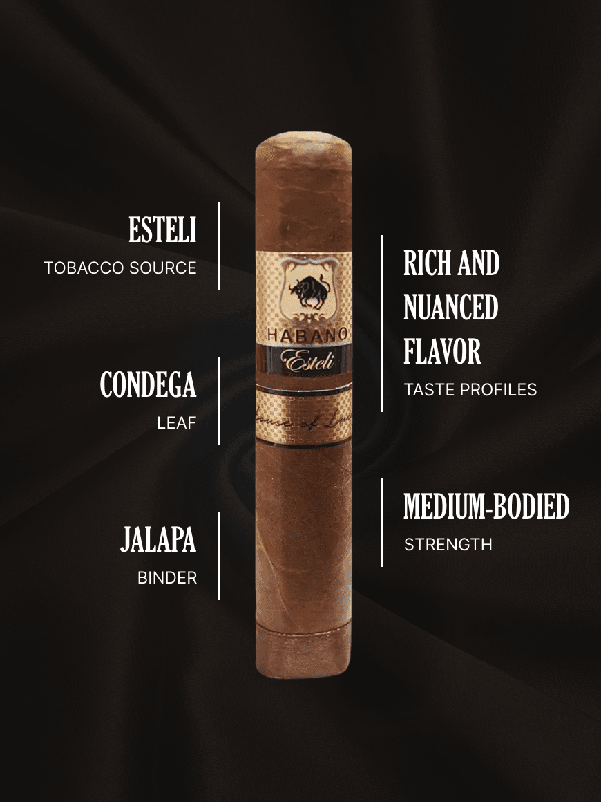 Each cigar is handmade in Nicaragua, featuring a wrapper from Condega, a binder from Jalapa, and a filler from Esteli, all combining to create a harmonious balance of flavors and aromas. Whether enjoyed on a special occasion or as an everyday indulgence, the Habano Esteli Robusto 5x50 promises a memorable smoking experience.