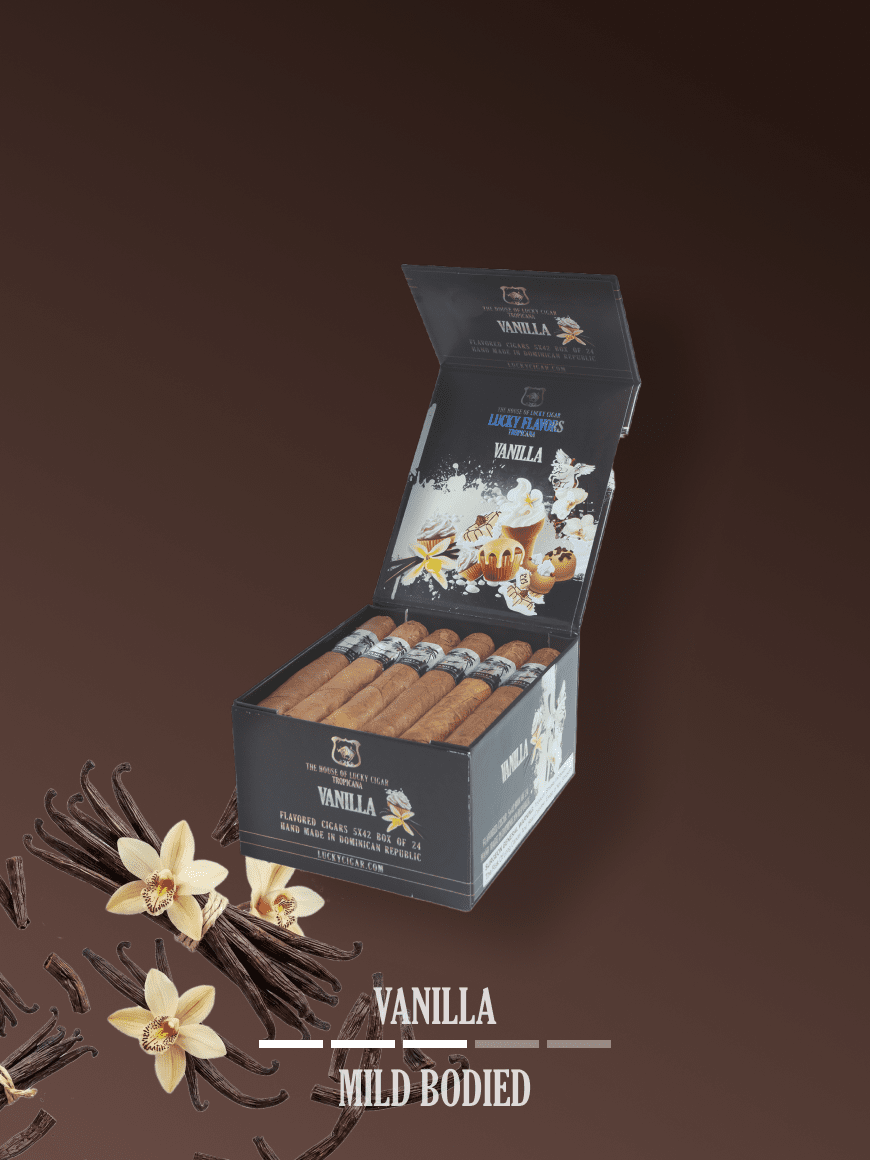 Discover the diverse selection within The Flavors Collection by The House of Lucky Cigar, where each cigar is a unique journey of taste. From Cherry to Mojito Rum, and Pina Colada to Chocolate, there's a flavor for every palate. Elevate your smoking routine with the rich and inviting aroma of our vanilla-flavored cigars, a true testament to the art of fine cigar craftsmanship.