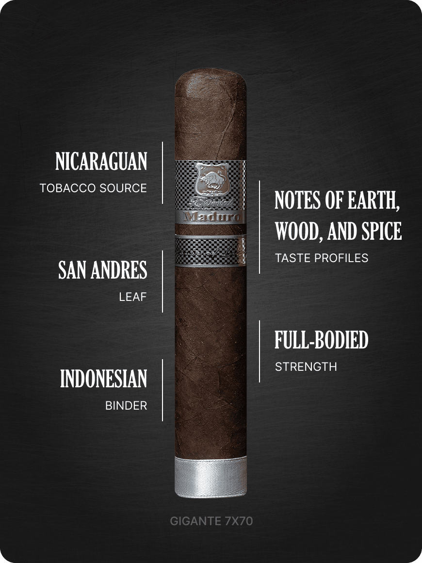 Our Especial Maduro range comes in a variety of sizes and box options, allowing you to find the perfect fit for your collection. For the Gigante Box Press 7x70 enthusiasts, you can purchase a box of 20 and indulge in the rich flavors that only the San Andres wrapper can offer. Wrapped in a top-quality San Andres leaf and bound with an Indonesian binder, these handmade cigars from Nicaragua provide an authentic and satisfying smoking experience.